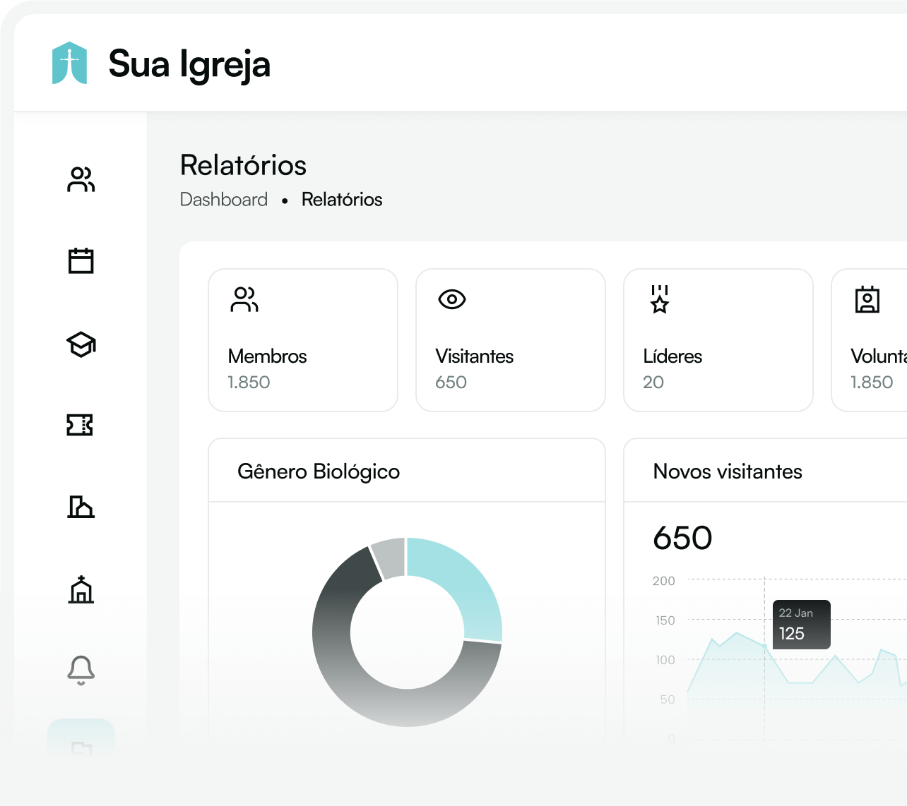 Gestão fácil e centralizada para todas as igrejas.